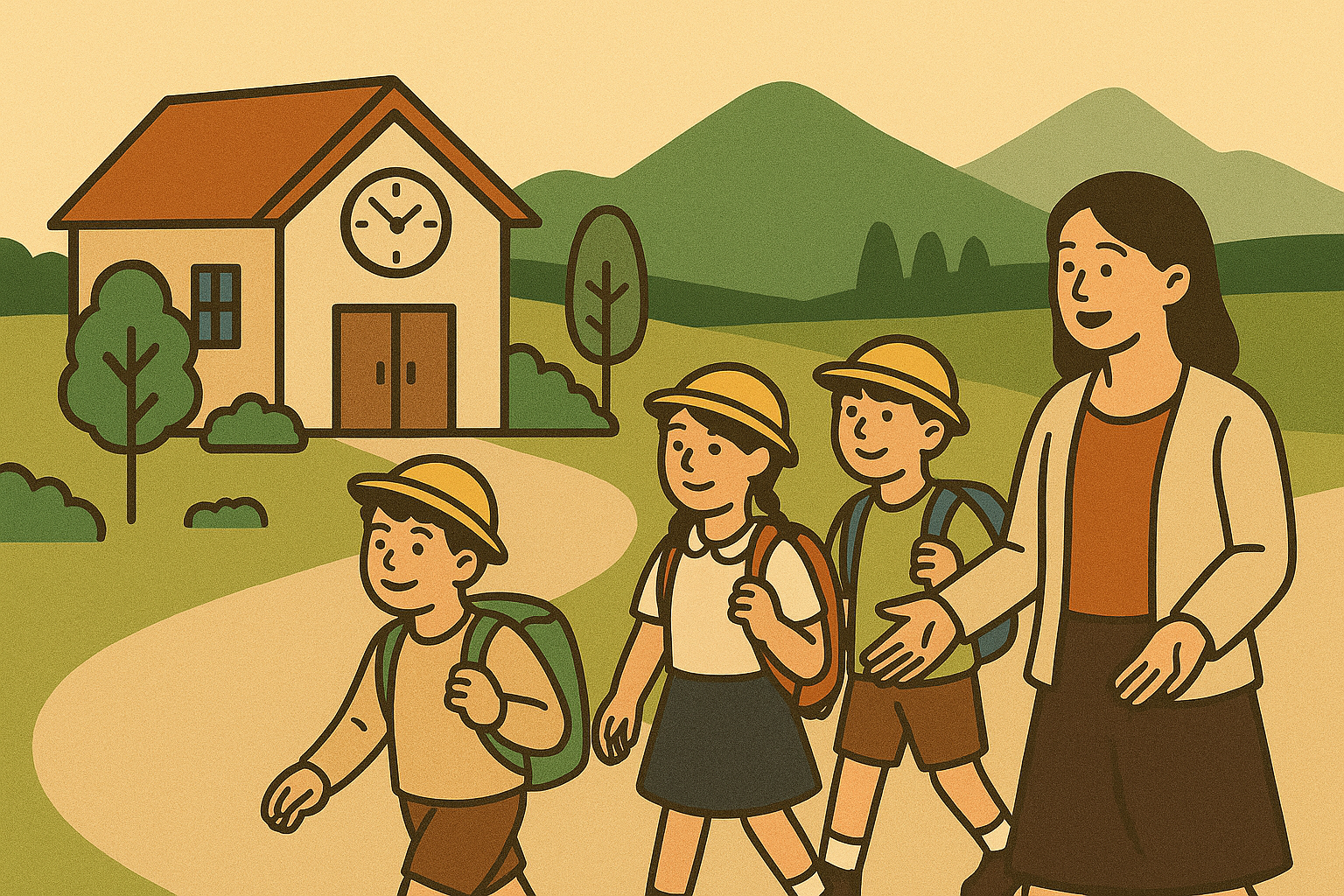‘학교-마을-자연’을 연결하는 이 모델은 지역 전체가 하나의 큰 학교로 기능하도록 설계되었습니다.