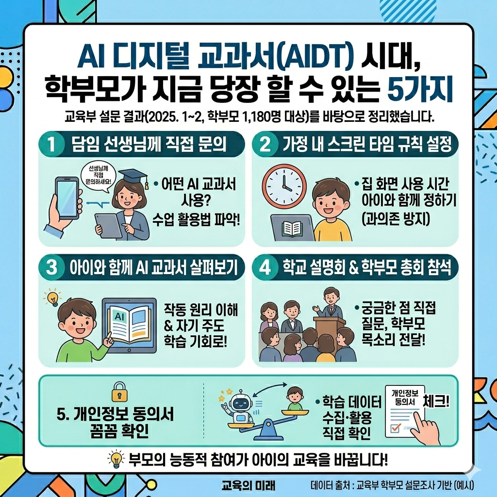 AI 디지털 교과서는 이미 시작되었습니다. 찬성이든 반대든, 먼저 제대로 아는 것이 우리 아이를 지키는 첫걸음입니다. 기술이 바뀌어도 교육의 중심은 결국 아이입니다. 학부모가 관심을 갖고 학교와 함께 방향을 잡아가는 것, 그것이 지금 가장 필요한 일입니다.