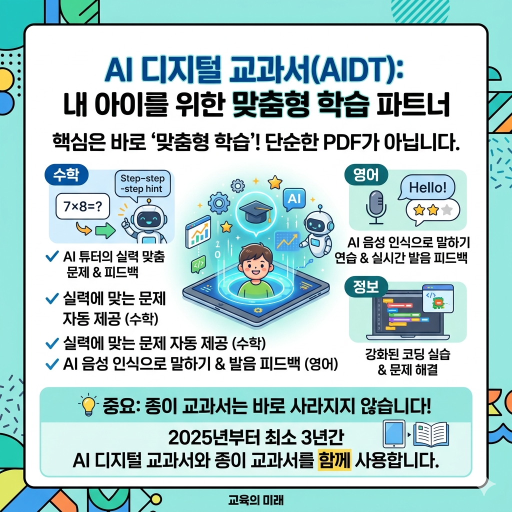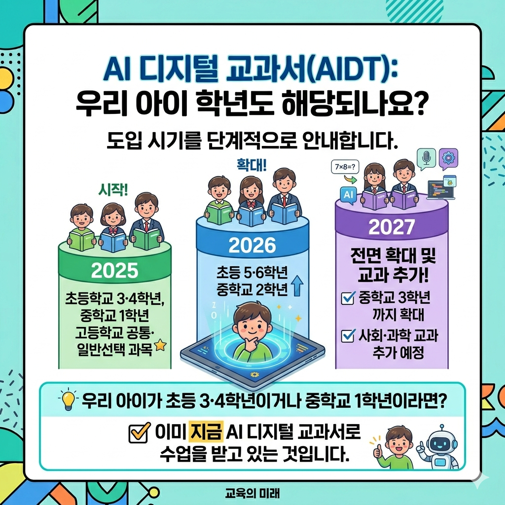 우리 아이가 초등 3·4학년이거나 중학교 1학년이라면, 지금 이미 AI 디지털 교과서로 수업을 받고 있는 겁니다.